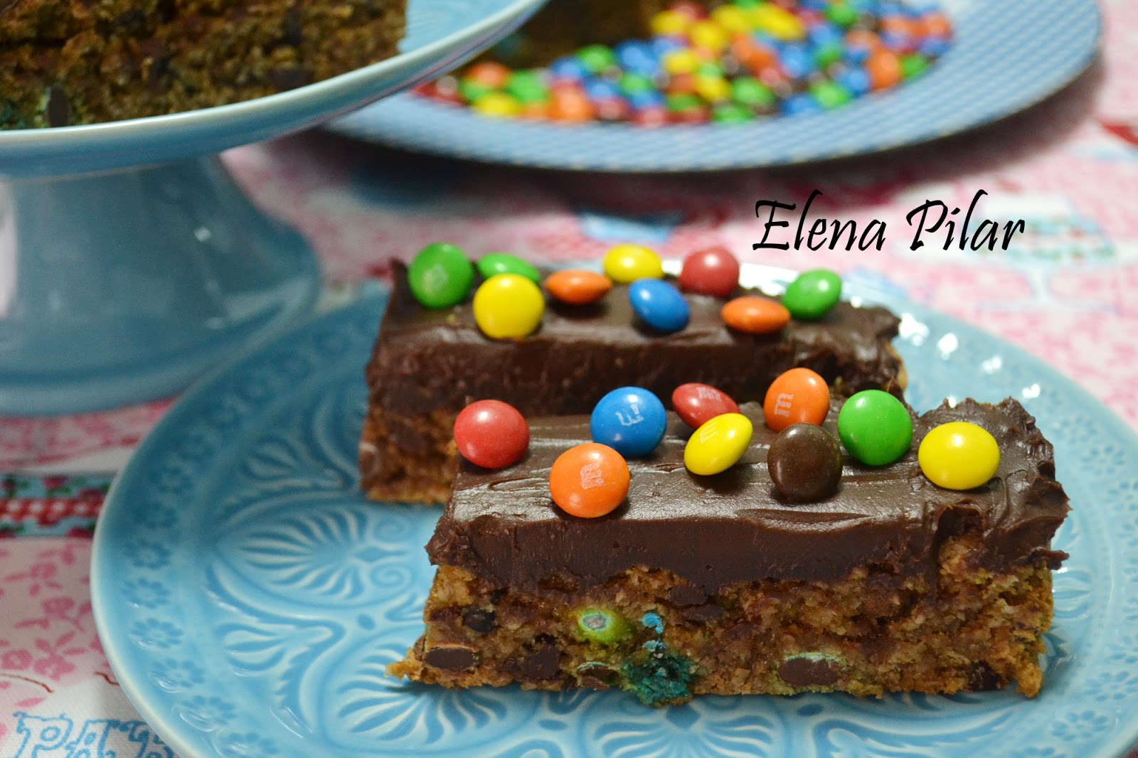 Dejamos enfriar. Cuando esté completamente frío, lo esparcimos sobre la superficie de las barritas. Dejamos que el chocolate vuelva a endurecerse un poquito y cortamos las barritas. Decoramos con unos cuantos M&M"s.