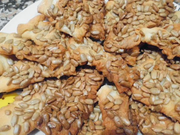 Estiramos la masa y la pintamos con un poco de aceite y añadimos las pipas peladas.
