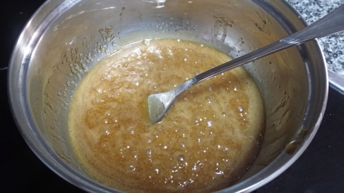 y calentamos, a fuego suave, sin dejar de remover, hasta que el azúcar se disuelva.