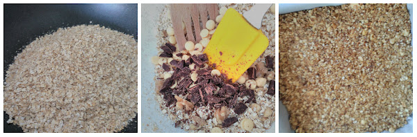 1.- Tostar los copos de avena unos minutos o hasta que empiecen a tomar color(no mucho).Reservar en un bol.