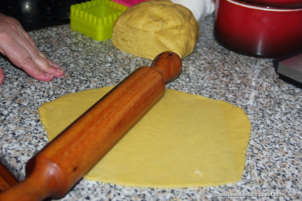 Estiramos la masa con ayuda de un rodillo de cocina hasta que nos quede bien finita.