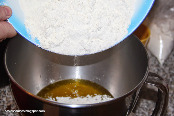 Finalmente añadimos la harina y amasamos hasta obtener una masa durita y brillante.