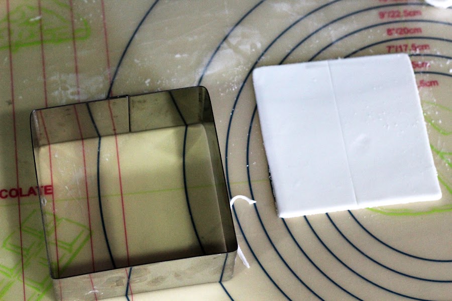Para hacer la forma del mismo tamaño he usado un cortador de galletas cuadrado grande, de unos 10 con y con el haremos un cuadrado.