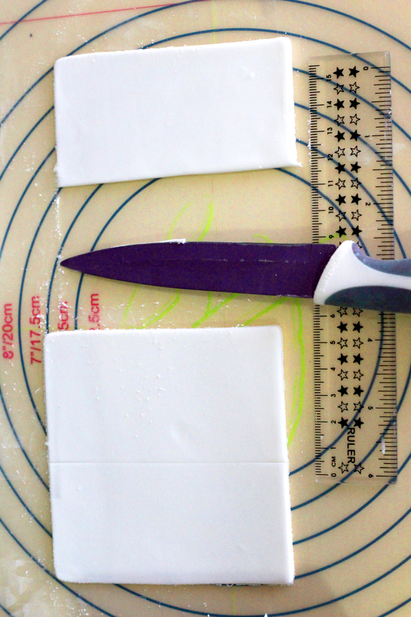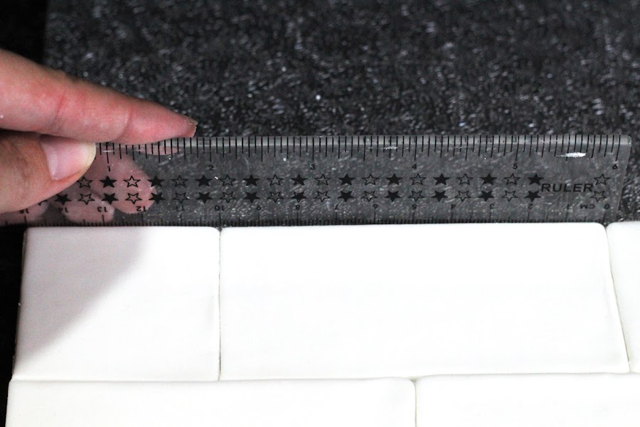 Mediremos el cuadrado y lo cortaremos por la mitad, de esta forma tendremos dos ladrillos.