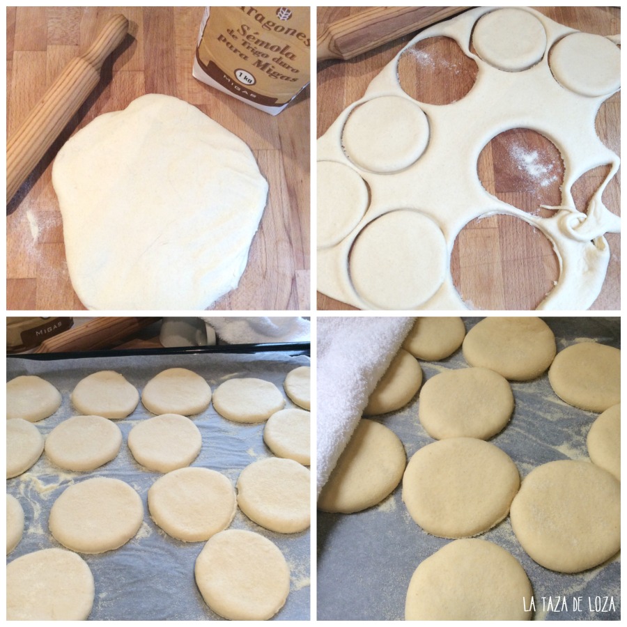 Se estira con un rodillo sin hacer mucha presión, dejándola con un centímetro de altura y se cortan con la ayuda de un vaso. Otro modo de hacerla es ir cortando bolas de la masa principal y aplastarlas, dándoles la forma redonda con las manos y nuestros dedos empujando hasta completar la forma redonda. Me pareció más complicado y más lento, así que fui a lo práctico.