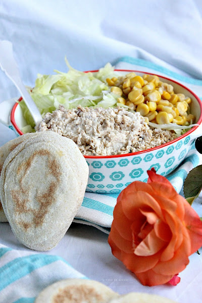 En esta ocasión lo hemos rellenado con una ensalada de pollo y para el desayuno el relleno ha sido algo dulce, tan rico de una manera como de otra.