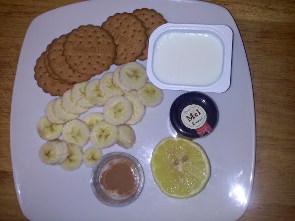Introducimos las mismas en el vaso batidor e incorporamos el zumo de limón, los yogures y 3 cucharadas de miel.