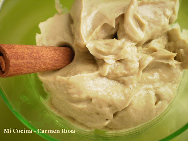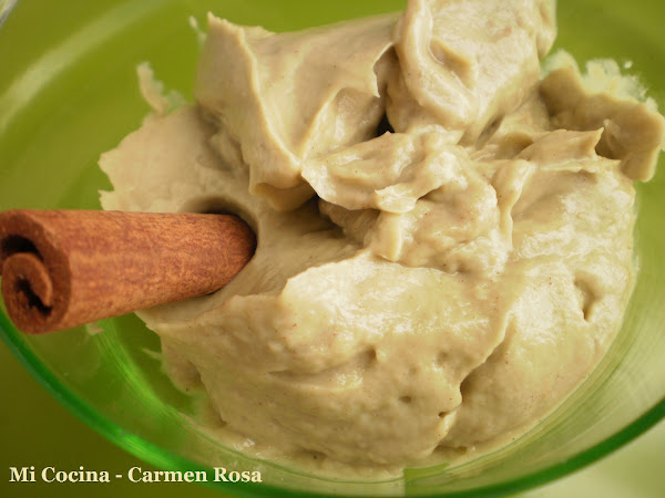 Presentar en copa espolvoreando con canela en polvo y la canela en rama.