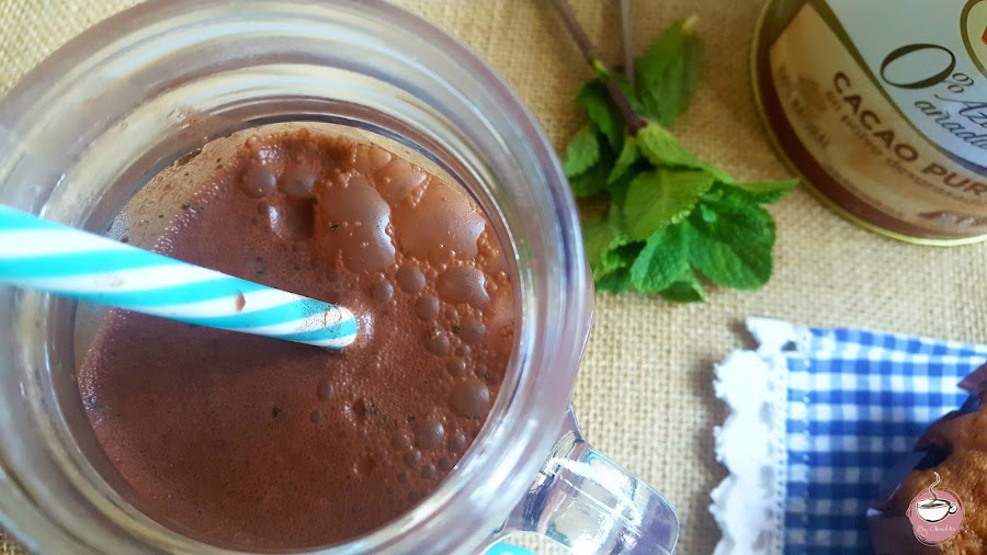 Ingredientes1/2 litro de leche de soja suave3 cucharadas de cacao puro sin azúcar Valor1 ramillete de menta freca2 cucharadas de sirope de ágave