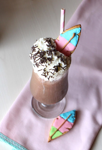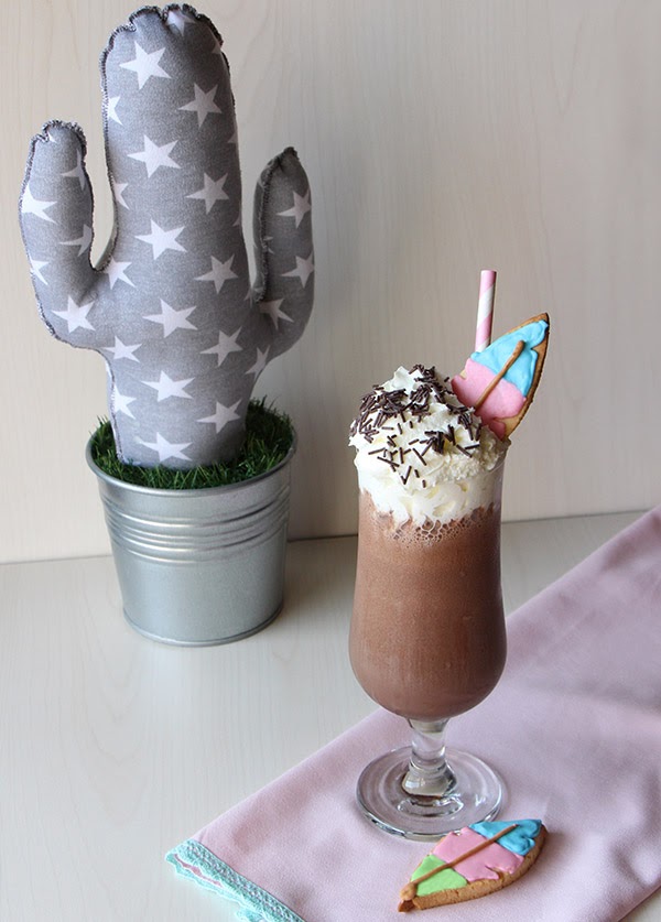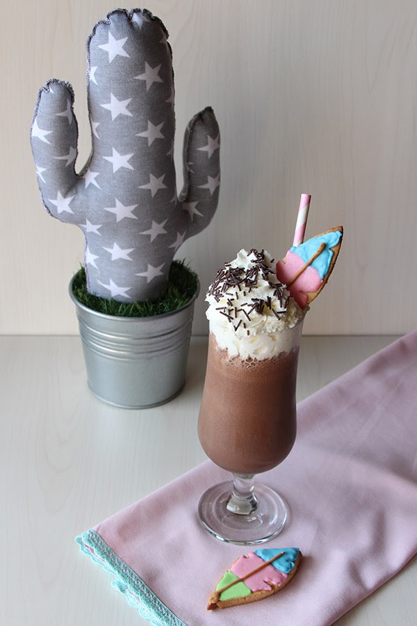 Para el proyecto Una galleta, un cuento de este mes, el cuento escogido por Nunca es demasiado dulce es Pocahontas, así que mi propuesta, como no podía ser de otra manera en esta época del año, es refrescante y alivia la sed, un batido de chocolate con nata (crema de leche), que sólo tuneándolo un poco queda perfecto para cualquier celebración temática.