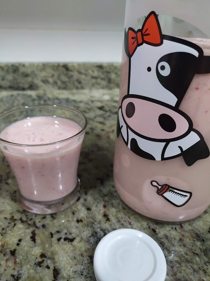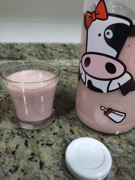 Tritura la fruta y ve añadiendo leche hasta conseguir la textura deseada.