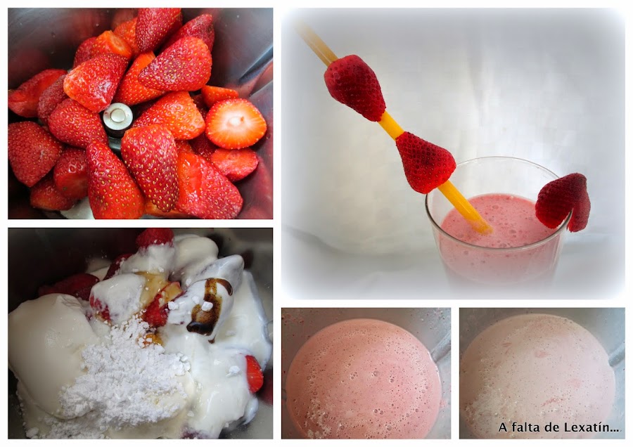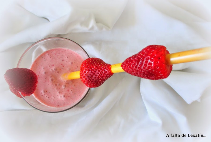 Empezamos bien la semana? Yo la voy a empezar con este delicioso batido de fresa que le pillé del frigo a Macumani, no se dio cuenta porque no me tiró ningún rulo,jajajaja, pero es que fue verlo y apetecerme así que pillé un vaso y la receta para poder hacerlo más veces porque nos encantó, tiene una consistencia y un sabor increíbles y mira que las fresa de aquí son "desaborías", pero es que qué plato de los que nos prepara "la Rulos"está malo?