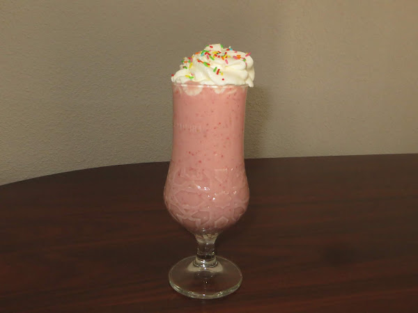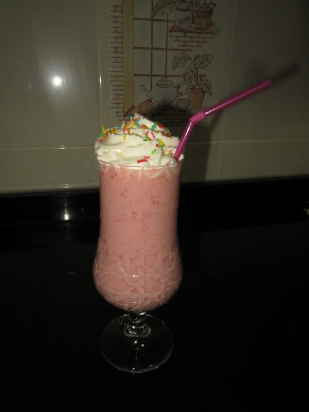 Batís toda la mezcla, lo ponéis en un vaso alto y lo adornáis con nata montada (crema de leche), echáis por encima algunos fideos de chocolate o de colores y ya está listo para servir. Se puede realizar con antelación, dejarlo en la nevera y luego simplemente añadirle la nata (crema de leche) y los fideos.
