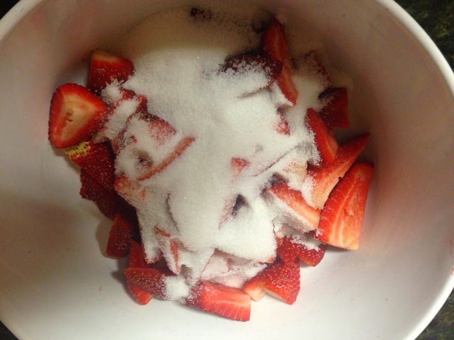 Las pondremos en un bol y las cubriremos con el azúcar.
