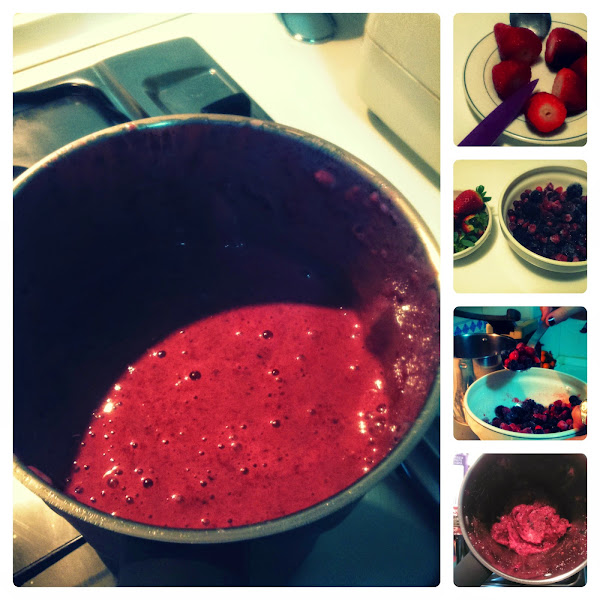 Para empezar hemos metido unas cuantas fresas al congelador y hemos tenido la suerte de encontrar un pack de frutos del bosque variados en la sección de congelados de un supermercado ( Consum). En un principio pensamos en comprar las frutas en las clásicas tarrinas ( o sea, cada tipo en un recipiente independiente) pero es el doble de caro.