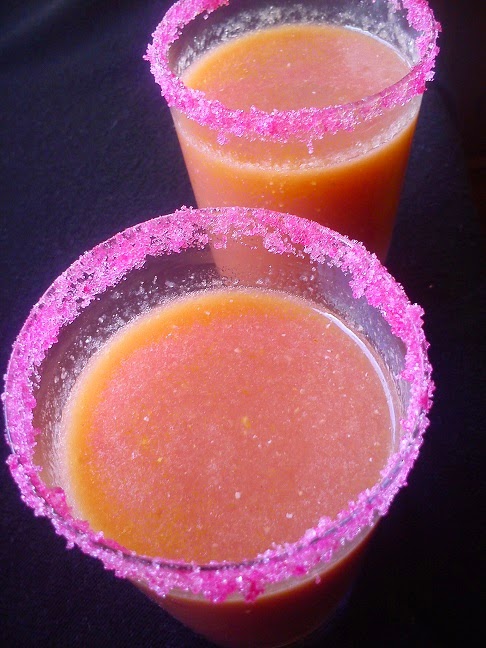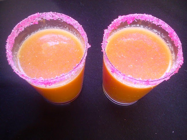 Lo primero que hice fue sacarle todos los granos a la granada. Seguro que ya lo sabéis, pero una manera fácil de hacerlo es partirla por la mitad y con la mano de un almirez o similar, ir golpeándola hasta que se caigan todos. Los metí en el vaso de la batidora y los batí bien. Este caldo que saqué lo colé para no encontrarnos las pepitas, que estas sí que son muy desagradables por lo duras que están. Luego eché todas las demás frutas limpias de la piel en un bol y con la batidora las batí bien hasta que se quedó un puré fino. Lo mezclé con el jugo de la granada y listo!!! En mi casa nos tomamos los zumos de naranja con la pulpa, he acostumbrado a las niñas desde pequeñas a hacerlo así y les encanta, además que de esta manera nos tomamos todos los nutrientes y la fibra que contienen las frutas. Si no os gusta así, lo podéis colar :D.