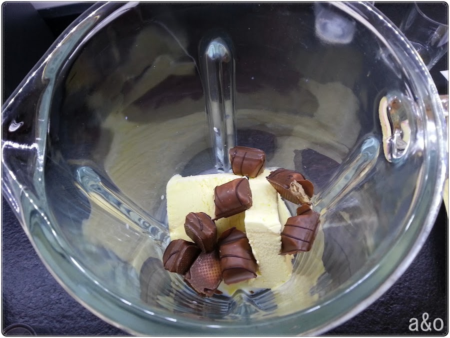 Primero. Es indispensable tener una batidora o una batidora de vaso. Vertemos en ella la leche, el helado y las barritas de Kinder Bueno troceadas para mezclarlo todo.