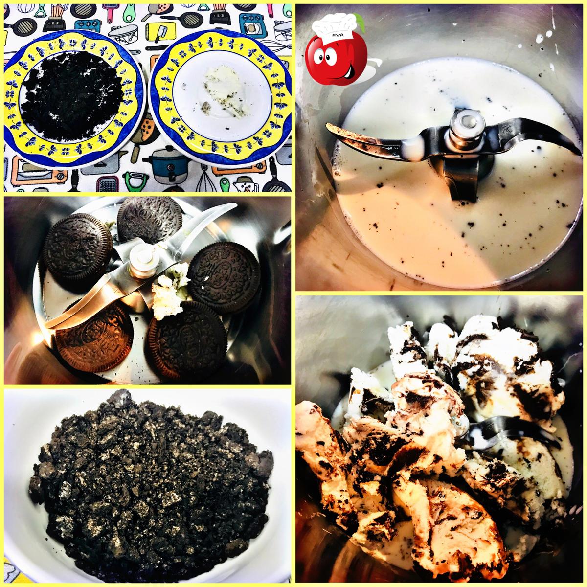 Incorporamos las Oreo trituradas y mezclamos a velocidad suave.
