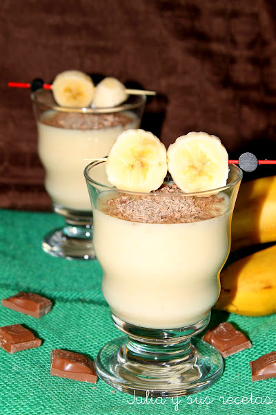 Lo servimos fresquito con una brocheta de plátano y el chocolate rallado por encima.