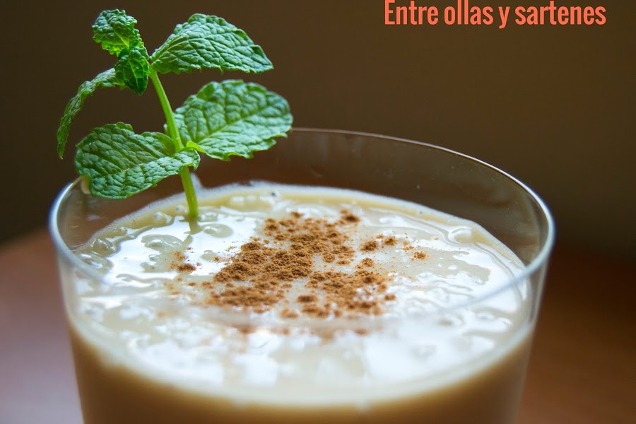 Servimos en un vaso adornardo con una pizca de canela en polvo y una ramita de hierbabuena.