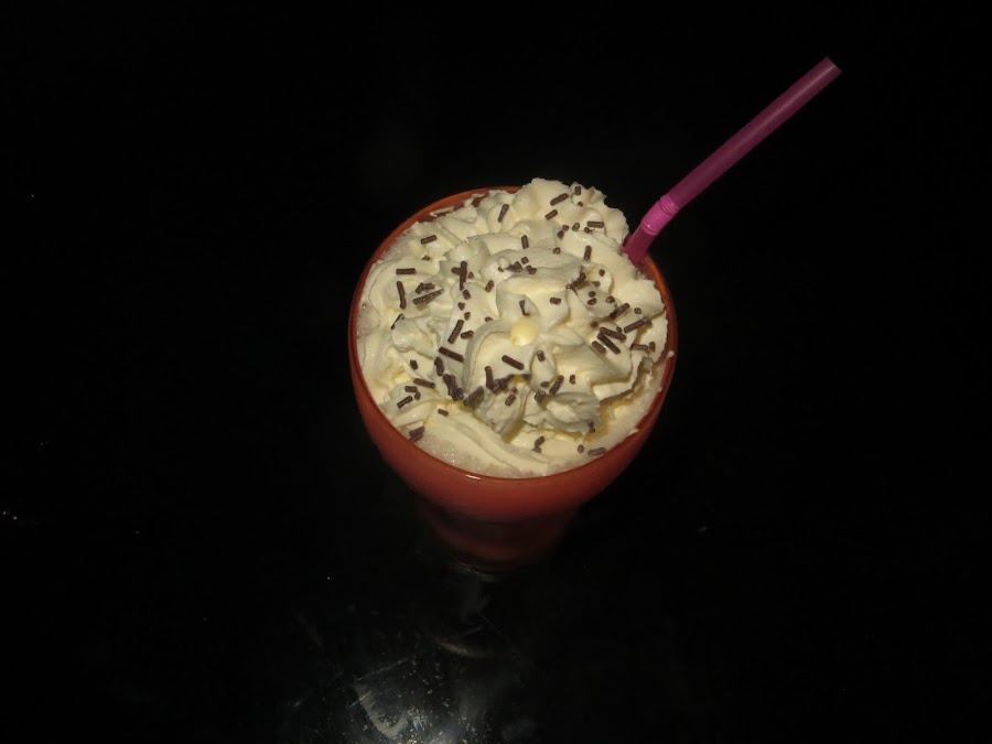 Lo único que tienes que hacer es triturar la leche con la bola de helado y añadirle la esencia de vainilla, se le da varias vueltas y se echa en un vaso verás que la parte de arriba queda más espumosa. Luego le pone la nata montada (crema de leche) y tu sirope favorito y ya está listo para beber. Lo importante es servirlo muy frío.