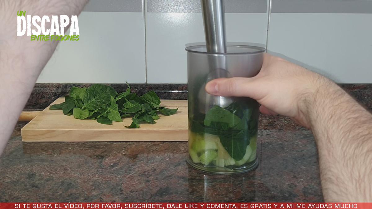 Cuando ya tenemos todo bien triturado añadimos el resto de las espinacas y volvemos a triturarlo.
