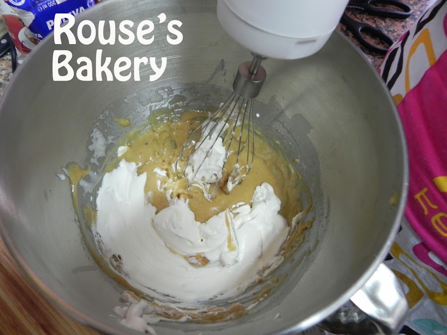 Montamos los 100 ml. de nata (crema de leche) restantes. Añadimos a la mezcla de turrón y huevo primero la nata (crema de leche) con la gelatina diluida y la incorporamos bien a la mezcla. Luego la nata montada (crema de leche).