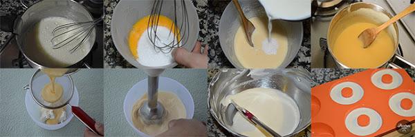 Lo metemos en una manga y rellenamos los moldes, con cuidado de no rellenarlos hasta arriba, los rellenaremos solo tres cuartas partes para que nos quede sitio para poner la crema de lima. Congelamos.