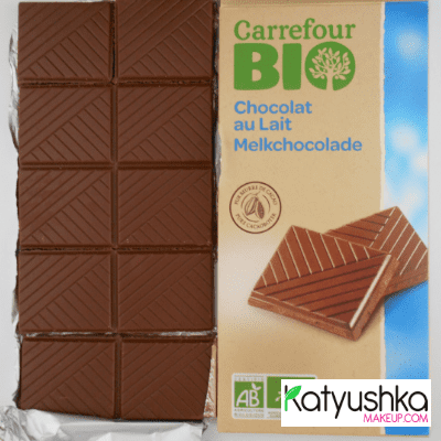 Sus ingredientes: Pasta de cacao*, azúcar*, trozos de almendras* 8,4%, manteca de cacao*, emulgente: lectinas* (girasol), extracto de vainilla*.