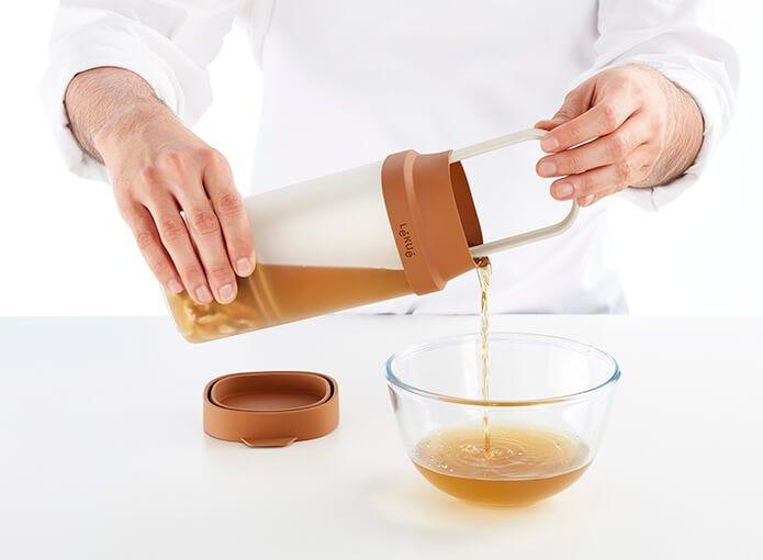 7. Vierte la bebida en el otro recipiente para almacenarla o servirla. ¡Lista para disfrutar!