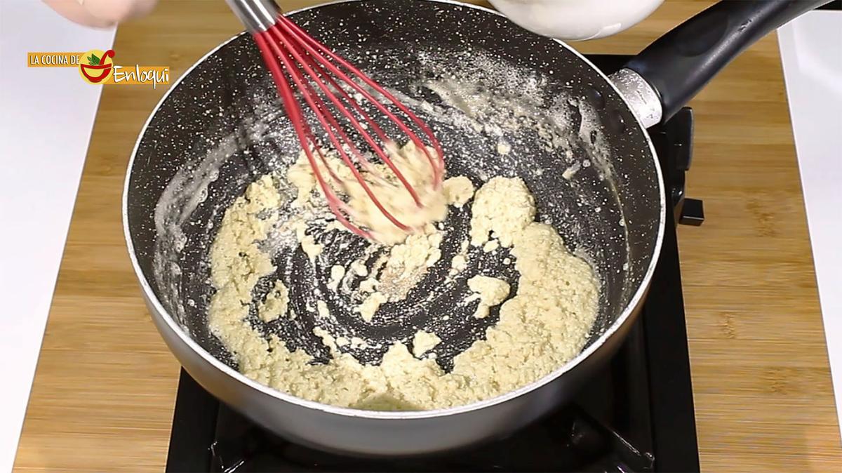 Una vez que la harina se ha tostado un poco es el momento de añadir la leche.