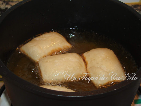 Freír en aceite de girasol a 180º durante 2-3 minutos por cada lado. Han de inflar y dorar.
