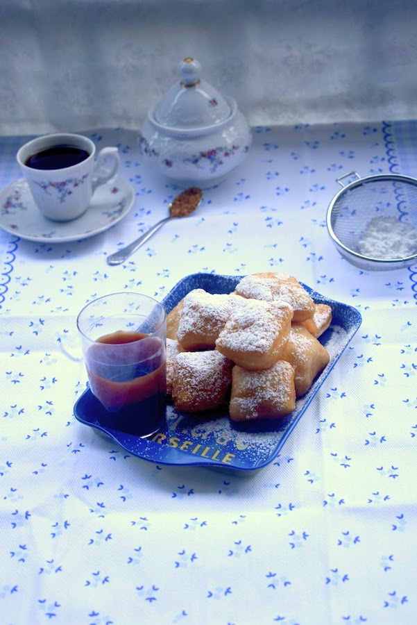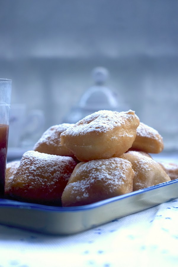 La variante que hoy os traemos es la más sencilla, simplemente friendo la masa sola y decorando con azúcar glas. En Lyon lo llaman "bugnes".
