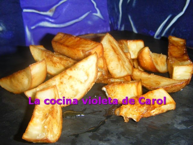 Freímos los bastoncillos en abundante aceite caliente, escurrimos sobre papel de cocina y sazonamos.