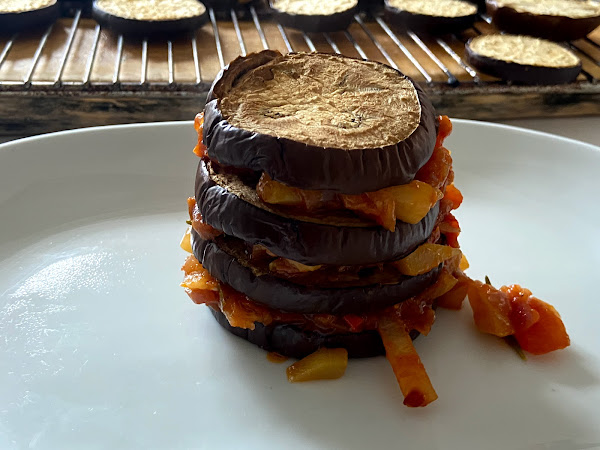 Ponemos el pisto sobre cada rodaja montando un timbal.