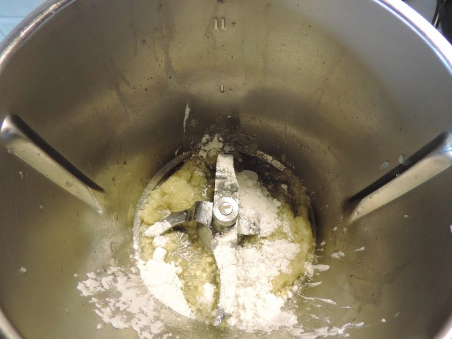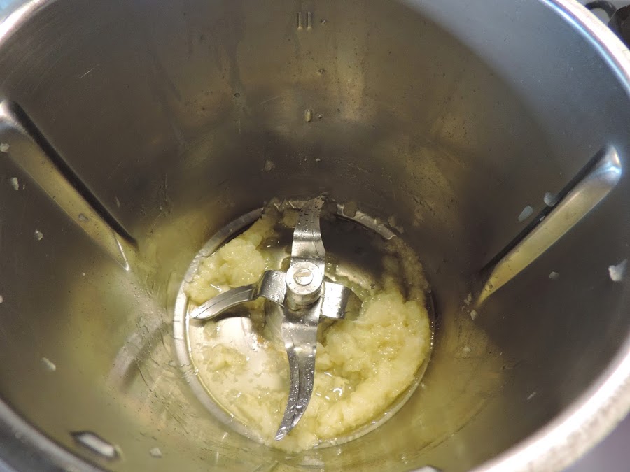 Cuando termine el tiempo, añadimos la leche por el vocal y dejamos unos 2 minutos en velocidad 4 sin temperatura.
