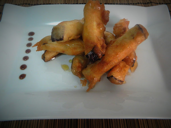 Calentamos el aceite, si tenemos freidora será más cómodo por tener más cantidad de aceite, sino tenemos pondremos una sarten con bastante aceite, tiene que cubrir los bastones de berenjena. Cuando este caliente, vamos pasando la berenjena por la masa y vamos introduciendo en el aceite hasta que este dorado y poniendo en un plato con papel absorbente para retirar los excesos de aceite.