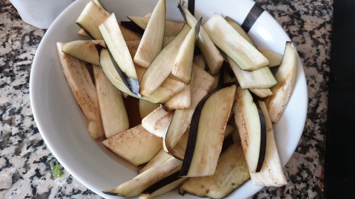 - Cortar las berenjenas en filetes. Luego los cortas bastones. Ponerlos en un bol lo suficientemente grande para meter toda la berenjena y echamos la Cervezas y las dejamos como unos 2030 minutos