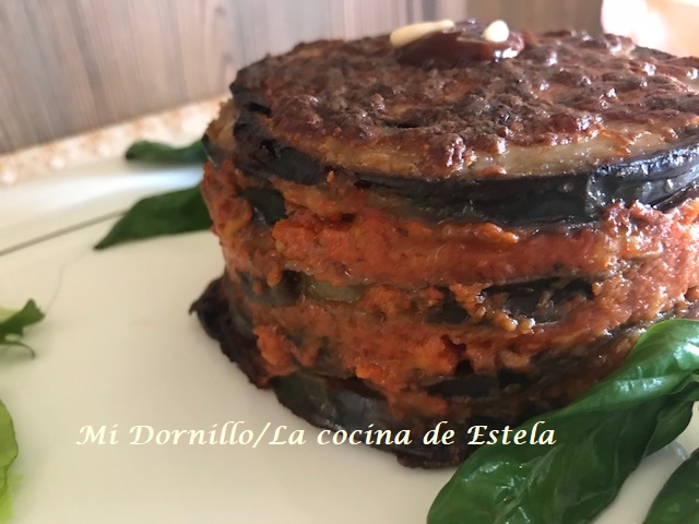 1º/ cortamos las Berenjenas en laminas y ponemos en agua con sal para que suelte el amargor, dejamos un rato y sacamos secando con servilletas de cocina.