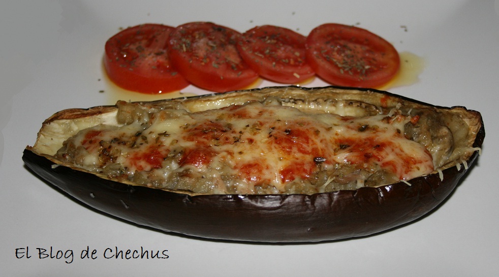 Cuando tengamos las berenjenas hechas, con un cuchillo afilado las vaciamos, con cuidado de no romper la piel pues será donde las serviremos. Troceamos toda la carne de las berenjenas y la añadimos a la sartén con la cebolla. Añadimos sal, pimienta y un poco de orégano. Damos unas vueltas y finalmente añadimos el atún. Yo le añadí tomate frito a las de mis hijas, para que se las comieran mejor.