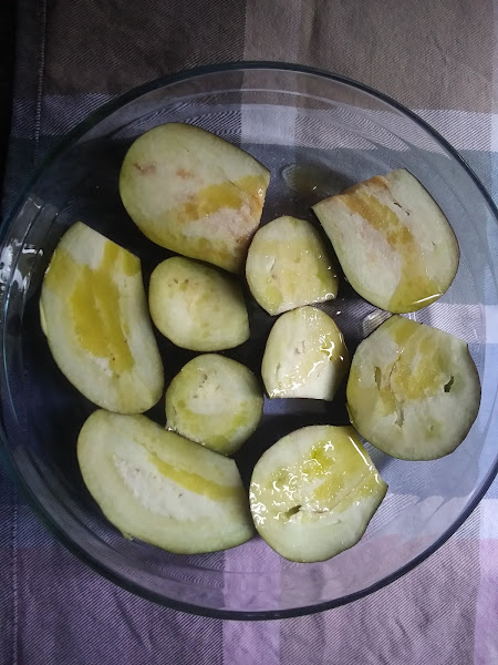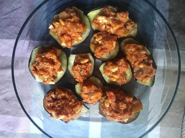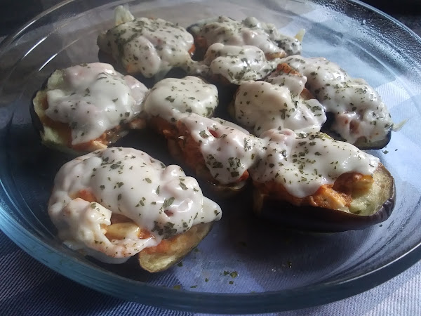 Encontré estas miniberenjenas en la verdulería y me parecieron perfectas para hacerlas en el micro. Además me había sobrado un poco de pisto de los "Pepitos valencianos" y aproveché para completar la receta. En menos de 20 minutos, tenemos un plato sano y lleno de sabor.