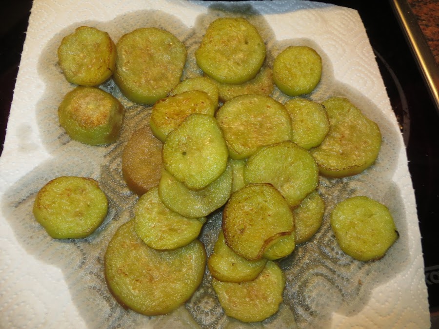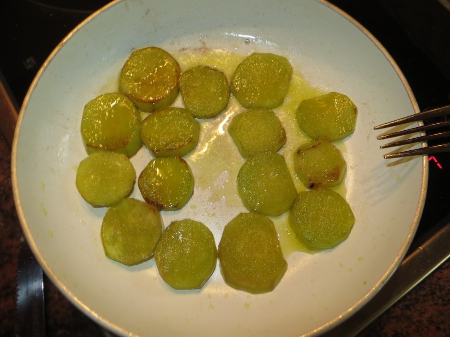 Una vez que tenéis el tomate, cortáis las berenjenas, si queréis las peláis o no, lo importante es dejarlas durante 20 minutos con sal en un plato. Las secáis y las vais friendo en una sartén con un poco de aceite, poco a poco tendréis que ir añadiendo más aceite, ya que las berenjenas se lo van chupando. Las vais sacando a un papel absorbente para quitarles el mayor aceite posible, si queréis reducir el número de calorías las podéis hacer a la plancha.