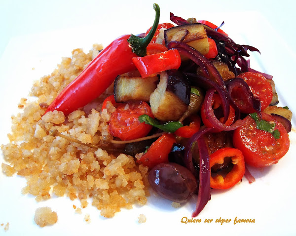Con antelación o de un día para otro preparar la base para las migas de pan.