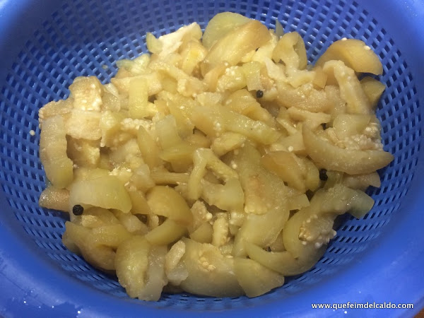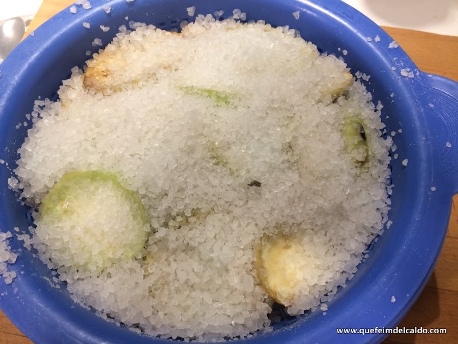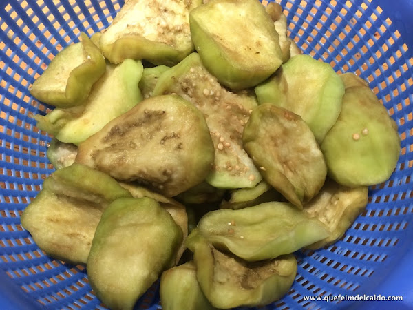 Pasadas las dos horas vemos como las berenjenas ha menguado su tamaño, ya que el agua se ha ido escurriendo.