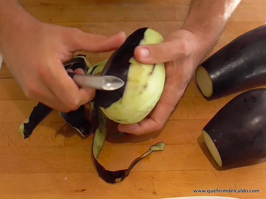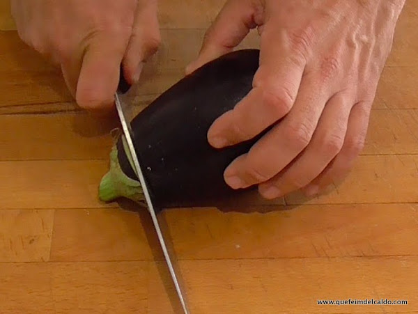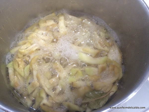 Cuando empieza a hervir colocamos las berenjenas y las dejamos cocinando durante 5 minutos.