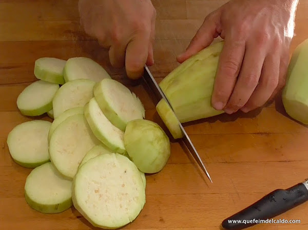 Cortamos en rodajas de aproximadamente medio centímetro.