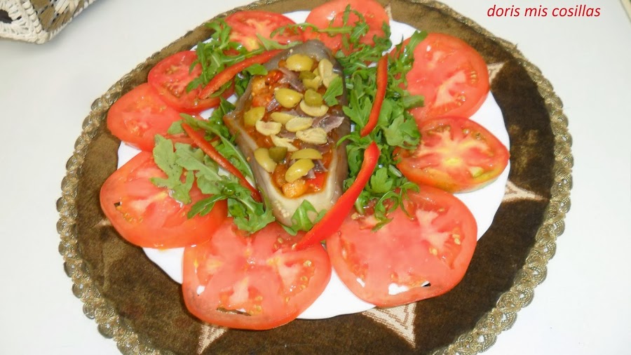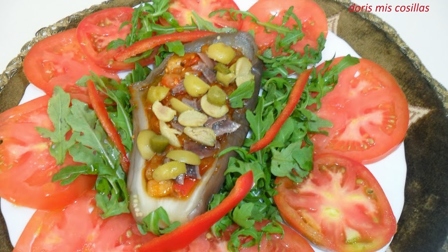 ELABORACIÓN DE BERENJENAS EN NIDO DE TOMATE Y RÚCULA: