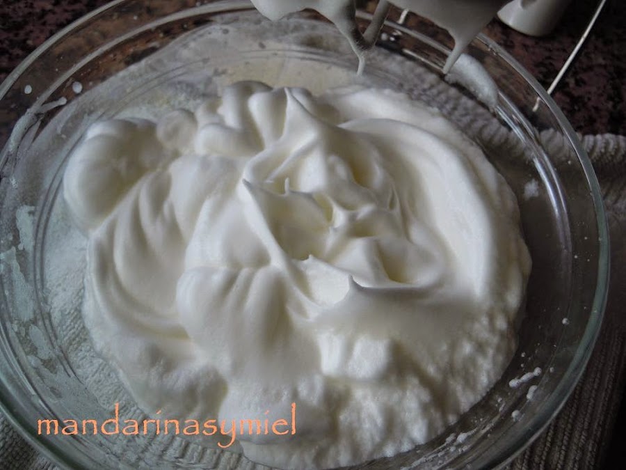 Monta las claras a punto de nieve, une con cuidado a la mezcla de berenjenas.