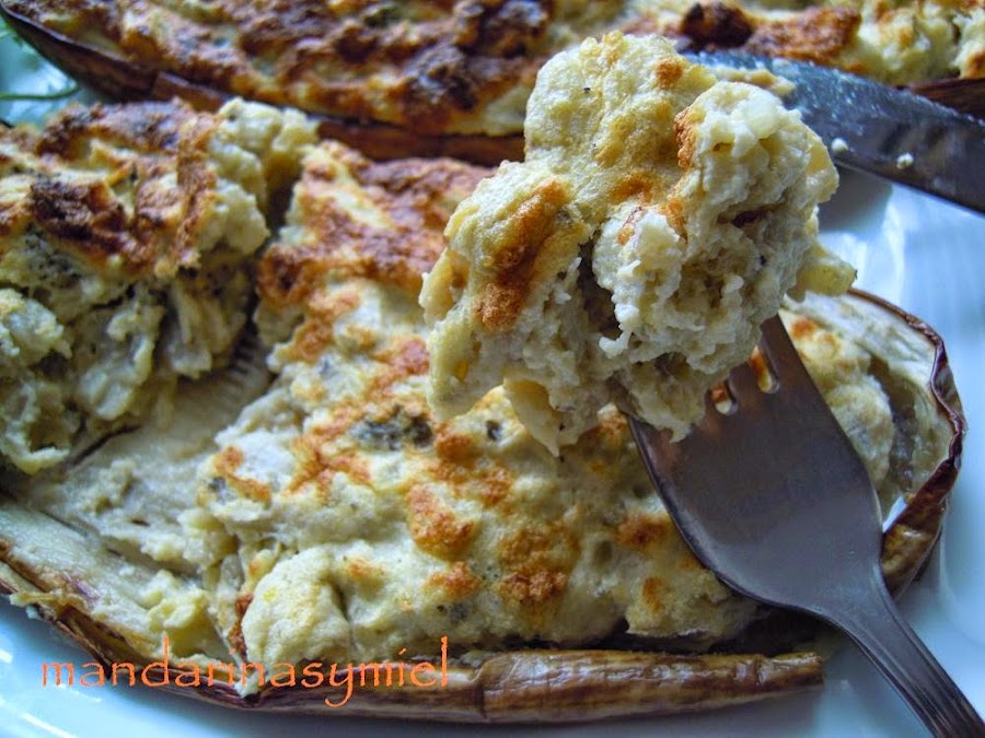 Rellena las berenjenas con todo el preparado, mete en el horno a gratinar durante 5 minutos, y ya están.