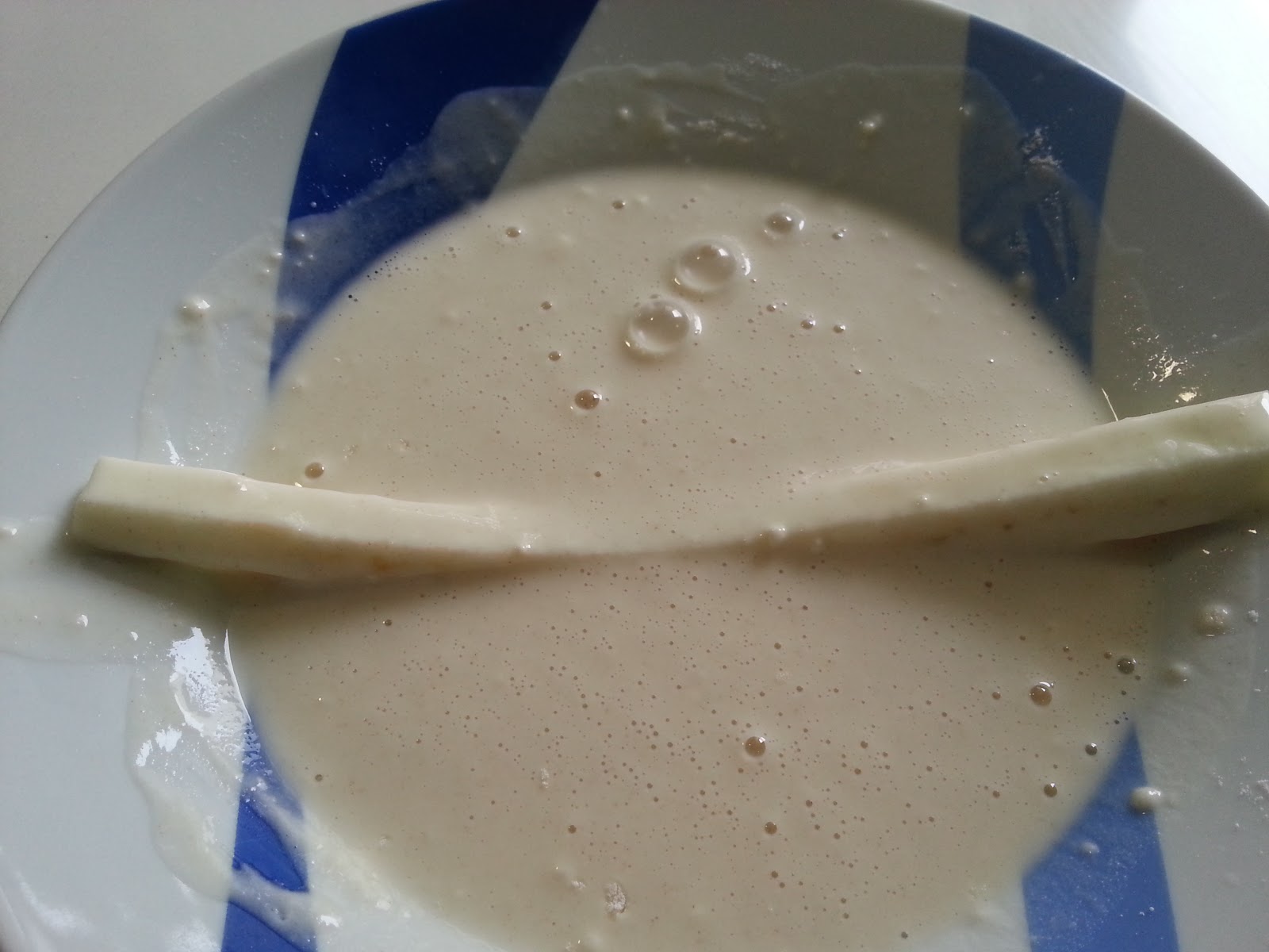 2. - El secreto de la tempura es que el agua esté helada, de este modo queda el rebozado muy crujiente. Así que ponemos en un bol o plato la harina con la sal y le añadimos el agua, y batimos hasta que esté todo bien ligado.